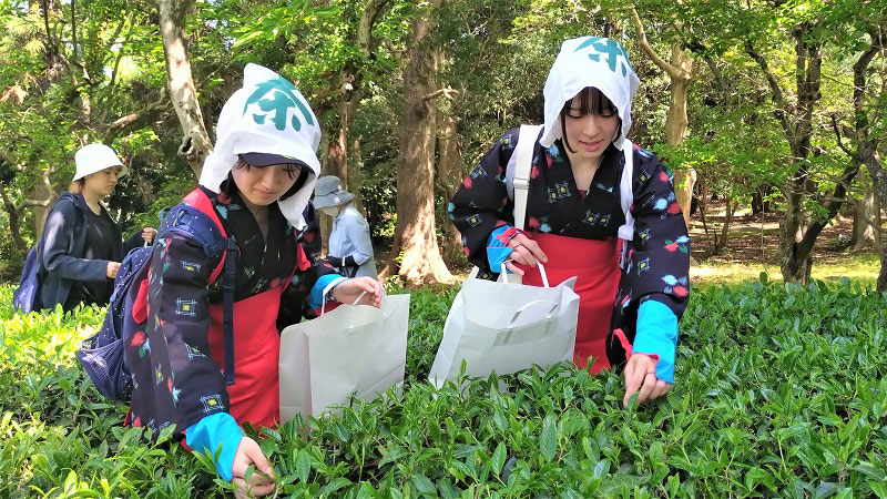 教育学部生涯学習学科と造形学部の博物館実習クラス19名が、静岡県立美術館ボランティア『草薙ツアーグループ』が主催するお茶摘み作業をお手伝いしました。