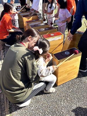 掛川市にある田園空間博物館・南遠州とうもんの里総合案内所で、静岡大学地域創造学環フィールドワークの学生に協力する形で保育健康学科『Sun&Leaf』の学生12名が『とうもんの里 秋のキッズフェス』を実施しました。