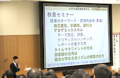 本学では特にキャンパスが3つに分かれているので、担当される先生方の共通理解と実践が重要です。今後は、現在検討されているカリキュラムをどのように運用していくかについても課題となります。冒頭で学長から示された教育研究システムの検討が必要な理由の一つはここにあります。