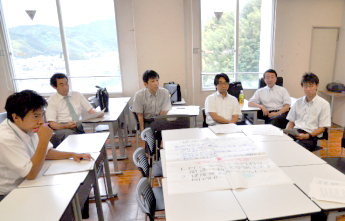 短い時間でしたが、円形になって話合っている学科、黒板を利用し、意見を書き込みながら話し合いを進めている学科など、それぞれ工夫して取り組まれていました。