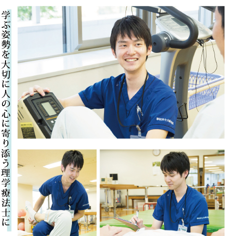 私が理学療法士を志したのは、高校時代に硬式テニス部で怪我をしてしまったことがきっかけです。そこではじめて理学療法士という職業を知り、元々医療の分野に関心があったこともあり、静岡理学療法学科に入学しました。授業で行ったグループでの実習では、対話することで自分の知らなかった知識や考えられなかった可能性を発見し、問題解決の可能性が広がることを実感しました。